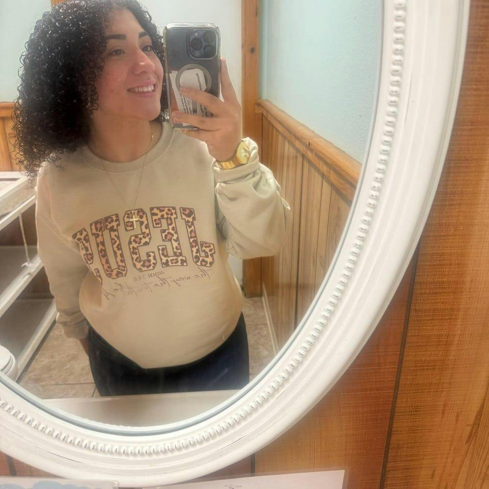 Introducing our "Cheetah Print Bible Verse" Unisex Cotton Sweatshirt, a stylish fusion of comfort, faith-driven inspiration, and bold design. Featuring a striking cheetah-print "JESUS" graphic paired with the scripture reference John 14:6 and the message "the way the truth the life", it serves as a daily reminder of spiritual guidance and purpose.