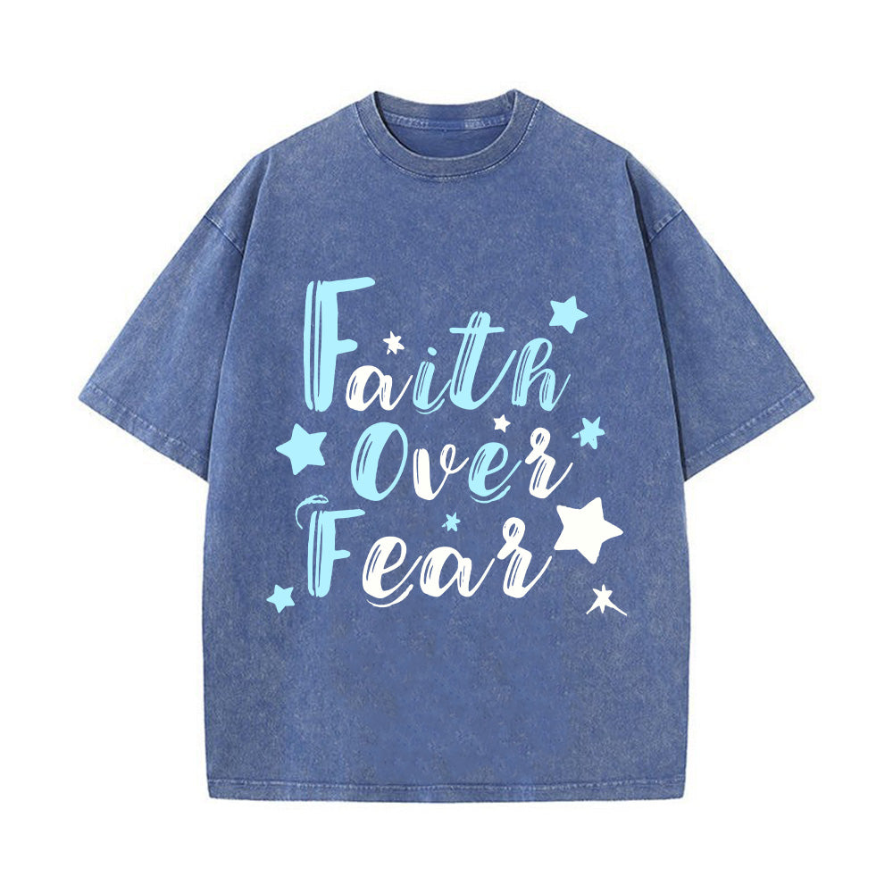 Faith Over Fear Denim-Style Christian Unisex Washed T-Shirt