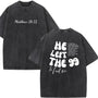 Embrace the profound declaration of faith with the "He Left the 99" Unisex Washed T-Shirt, a powerful blend of vintage washed style and the tender truth of God’s pursuit. This tee features "Matthew 18:12" on the front and a bold graphic paired with "He Left the 99 To find me" on the back. It brings the story of the lost sheep to life — a reminder that faith isn’t just a belief, but a personal affirmation that you are the one He relentlessly seeks and cherishes.