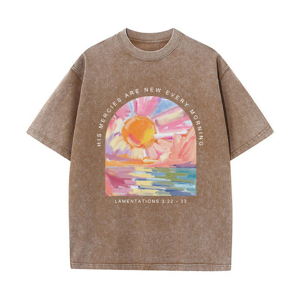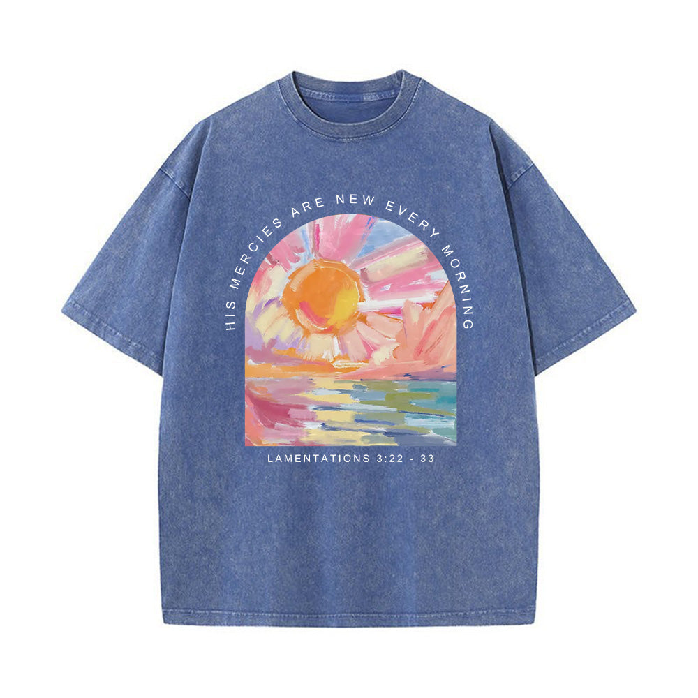 "Because of the Lord’s great love we are not consumed, for his compassions never fail. They are new every morning; great is your faithfulness." Discover the perfect blend of comfort and inspiration with our "His Mercies Are New Every Morning" Bible Verse Unisex Washed T-Shirt. Made from soft, washed cotton fabric, this tee offers a relaxed fit with a vintage, worn-in feel. The uplifting Bible verse printed on the front serves as a daily reminder of grace and renewal. A blend of comfort and faith, this tee is ready to be a staple in your wardrobe.