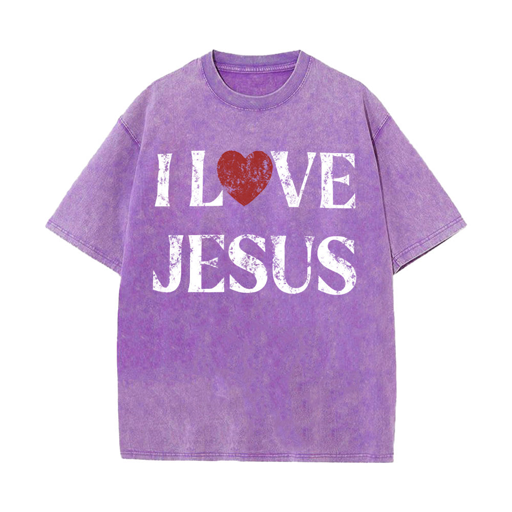 I LOVE Jesus Christian Unisex Washed T-Shirt