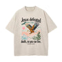 Proclaim the hope of eternal life with the "Jesus Defeated Death So You Can Live" Unisex Washed T-Shirt, a powerful declaration of resurrection truth.Featuring a vivid eagle graphic , this shirt brings the message of victory over death to life — a reminder that through Jesus, death is not the end, but the gateway to abundant living.