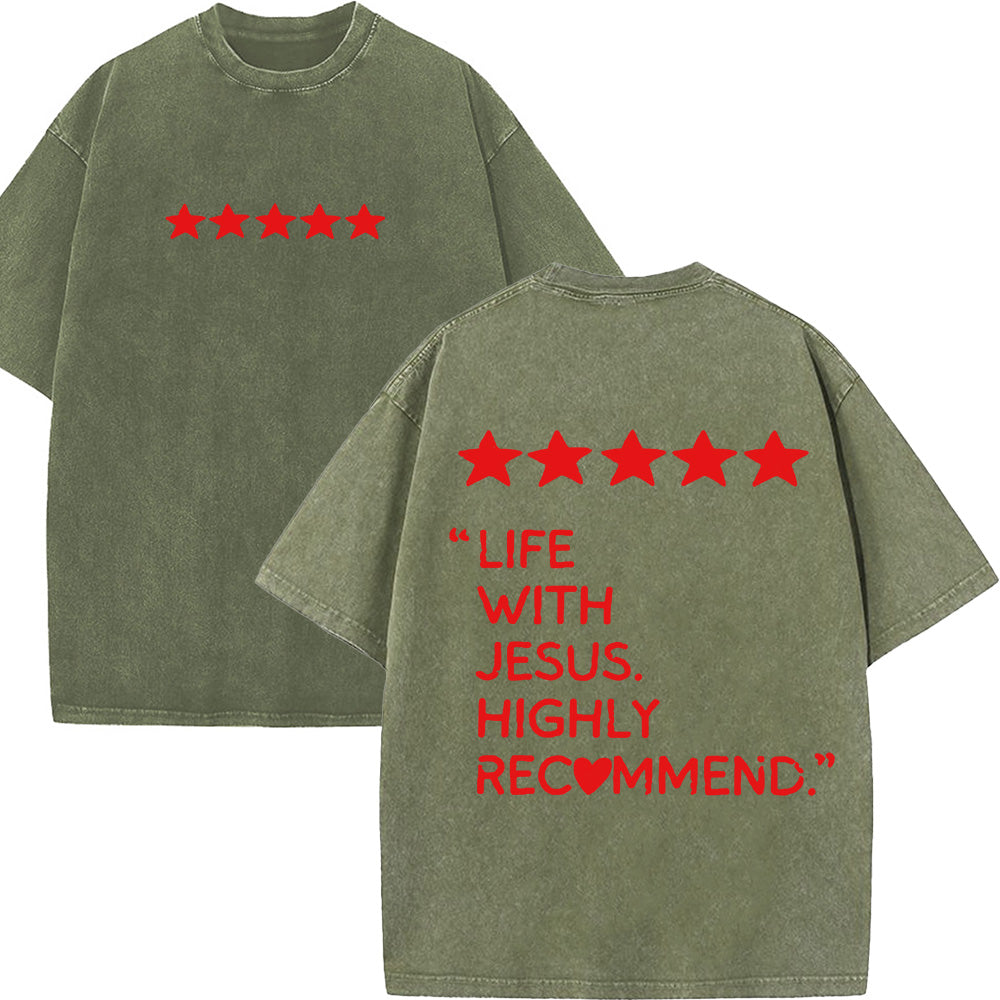 Life With Jesus Highly Recommend Unisex Washed T-Shirt