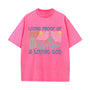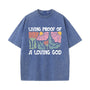 Explore our "Living Proof of a Loving God" Unisex Washed T-shirt and experience the perfect blend of comfort, faith, and timeless style. This casual essential is crafted from premium combed cotton fabric with a relaxed fit, exuding a vintage, worn-in vibe. The front features a powerful message that reminds people of God's love and grace, making it a worthy addition to any wardrobe.
