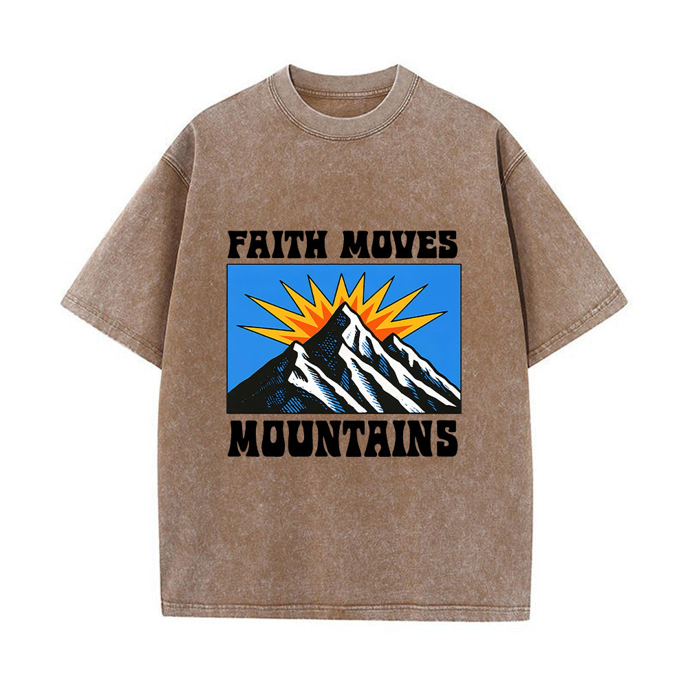 Embrace a retro faith reminder with the Retro Mountain Burst Graphic Christian Unisex Washed T-Shirt. Made from soft, washed cotton, it features a vibrant mountain burst design with bold “FAITH MOVES MOUNTAINS” text on the front. Inspired by Matthew 17:20, this upbeat tee delivers a cheerful, hopeful vibe for everyday wear.