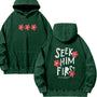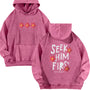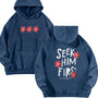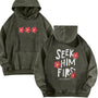 Crafted from 100% cotton fabric, this hoodie offers a relaxed fit and a naturally soft, lived-in feel for all-day comfort. The inspiring “Seek Him First” design on the front serves as a reminder to keep faith and purpose at the center of your life. With its durable construction, adjustable drawstring hood, and timeless washed finish, this hoodie is perfect for casual outings, everyday wear, or peaceful moments of reflection.