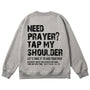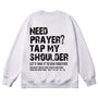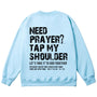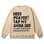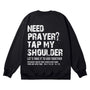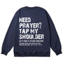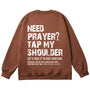 Embrace the heartfelt faith invitation with the "Tap My Shoulder" Christian Unisex Cotton Sweatshirt. Featuring bold distressed "NEED PRAYER? TAP MY SHOULDER" messaging, the encouraging "LET'S TAKE IT TO GOD TOGETHER" call, and the Scripture reference Matthew 18:20, this soft cotton sweatshirt reminds us that faith is a communal journey of lifting one another in prayer, trusting that God is present when we gather in His name.
