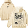 Embrace the bold declaration of faith with "The Good News Christian" Unisex Cotton Hoodie, a powerful blend of timeless style and life-giving spiritual truth. Crafted from soft cotton, this hoodie features a stark cross on the front and a detailed "The Good News" graphic paired with verses from Luke 2:10 and 2 Thessalonians 3:1 on the back. It brings the message of joy and hope to life — a reminder that faith isn’t just a belief, but a daily proclamation of the good news that transforms and unites all who embrace it.